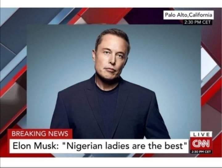 “Nigerian girls are the best to make a wife,” said Elon Musk during the interview. “When I was younger, I had a crush on a Nigerian girl named Lara. Her dad was a lecturer at the same university where my dad was teaching. Lara was the most beautiful girl I had ever seen. I was so madly in love with her that I promised myself I would marry her when I grew up.